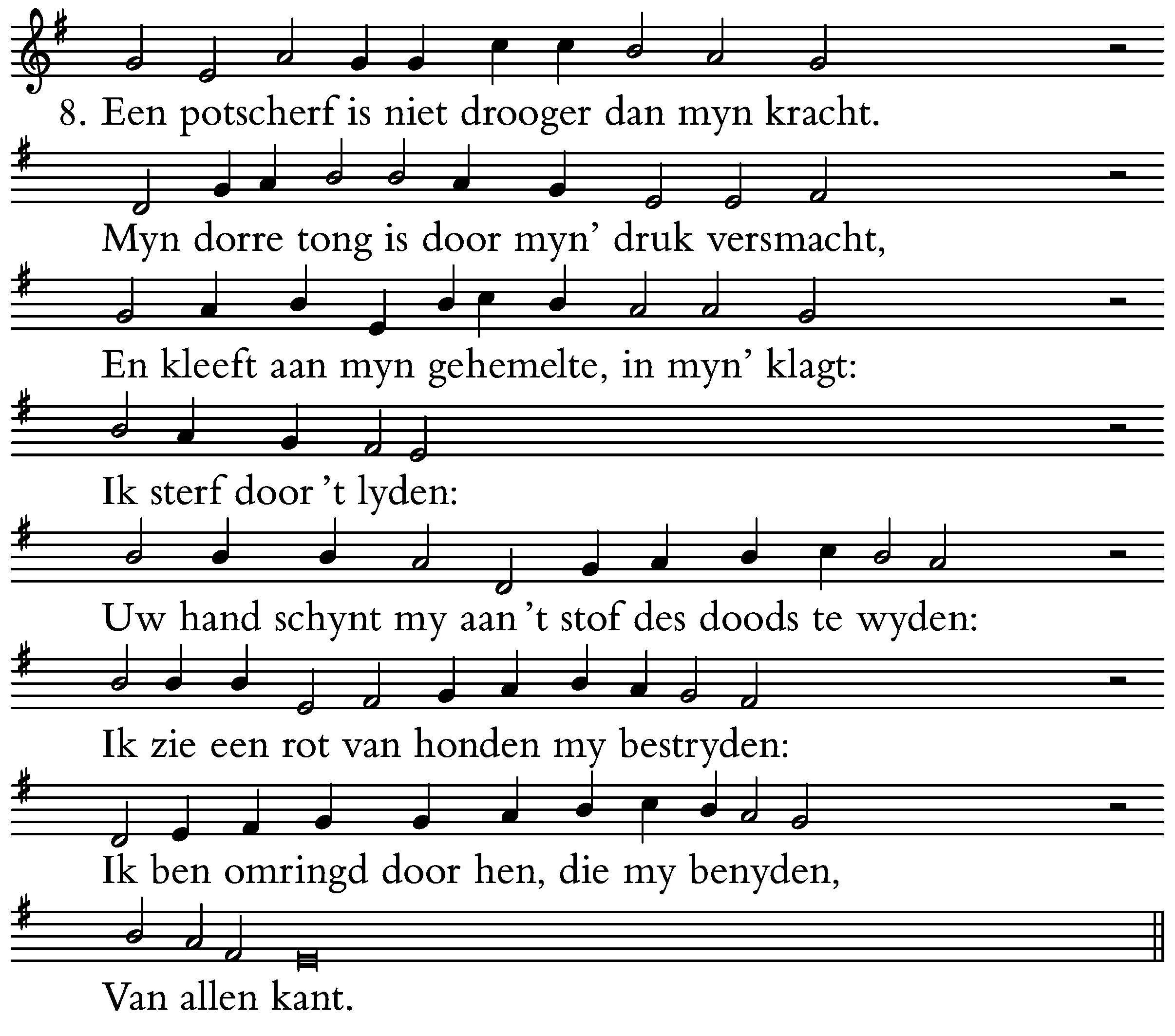 Uw hand schynt my aan ’t stof des doods te wyden: