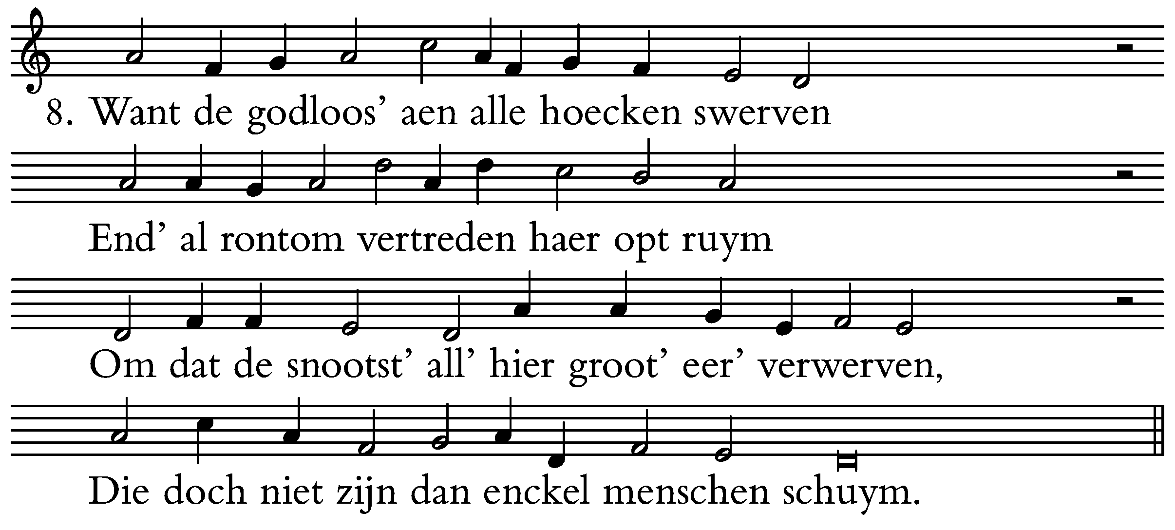Want de godloos’ aen alle hoecken swerven