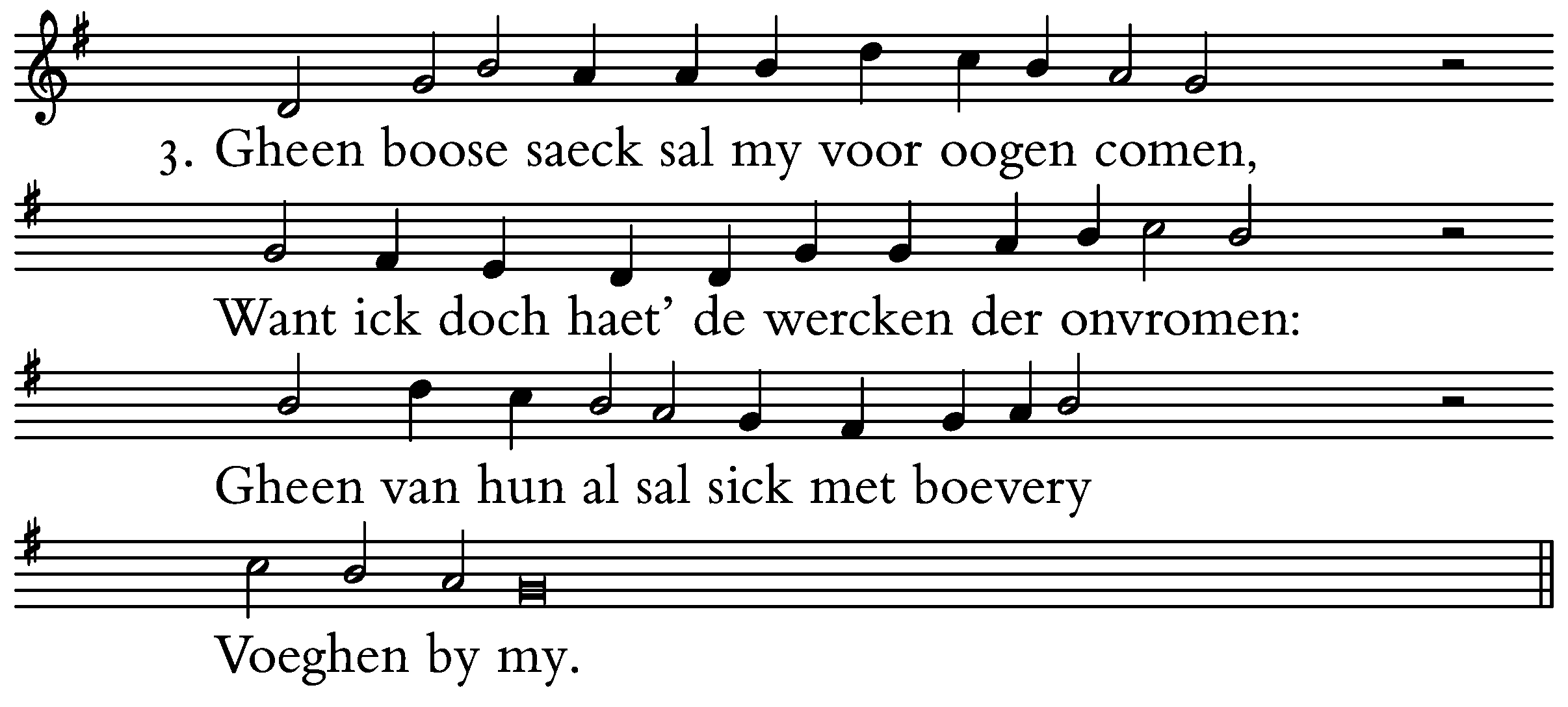 Gheen boose saeck sal my voor oogen comen,