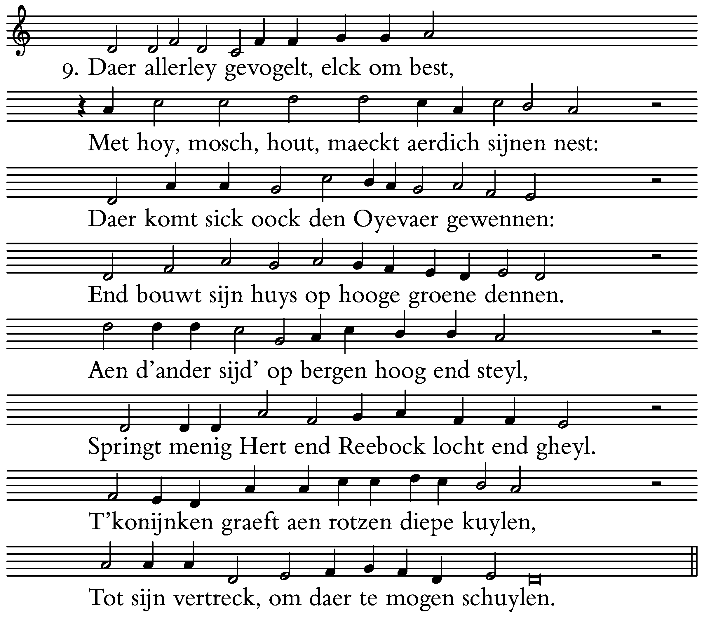 Met hoy, mosch, hout, maeckt aerdich sijnen nest:
